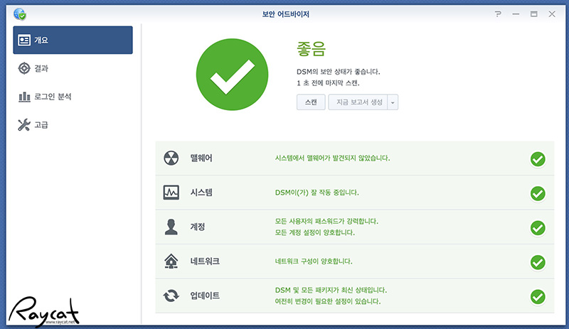 사용법도 간단하고 패키지에서 확인해 볼 수 있으며 10분이면 간단하게 나스의 보안을 체크할 수 있습니다.
