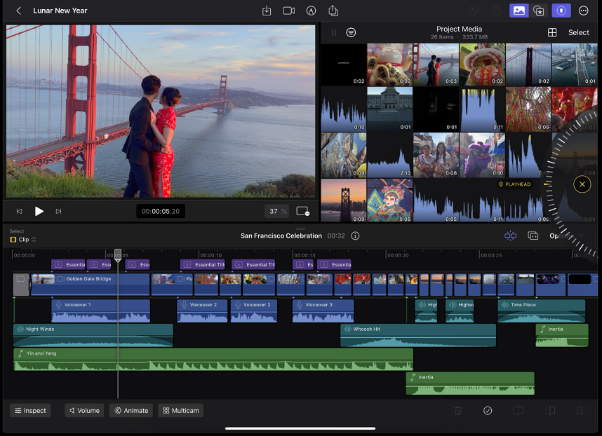 손가락만으로도 프레임 단위의 정밀한 편집이 가능하며 측면의 조그 휠을 사용해 영상을 천천히 보며, 클립을 다듬거나 이동시키고 애플펜슬의 활용도도 더 늘어나 애플펜슬의 호버 기능을 활용 스키밍할 수도 있습니다.