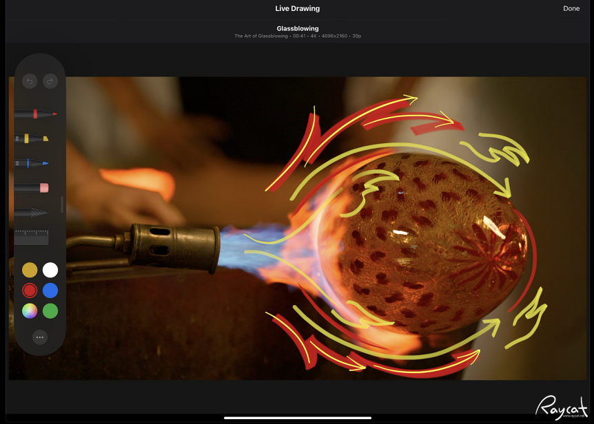 실시간 그림 그리기 기능을 제공해서 영상에 애플펜슬로 그림을 그리거나 글자를 쓰거나 할 때 정말 편하게 활용할 수 있습니다.