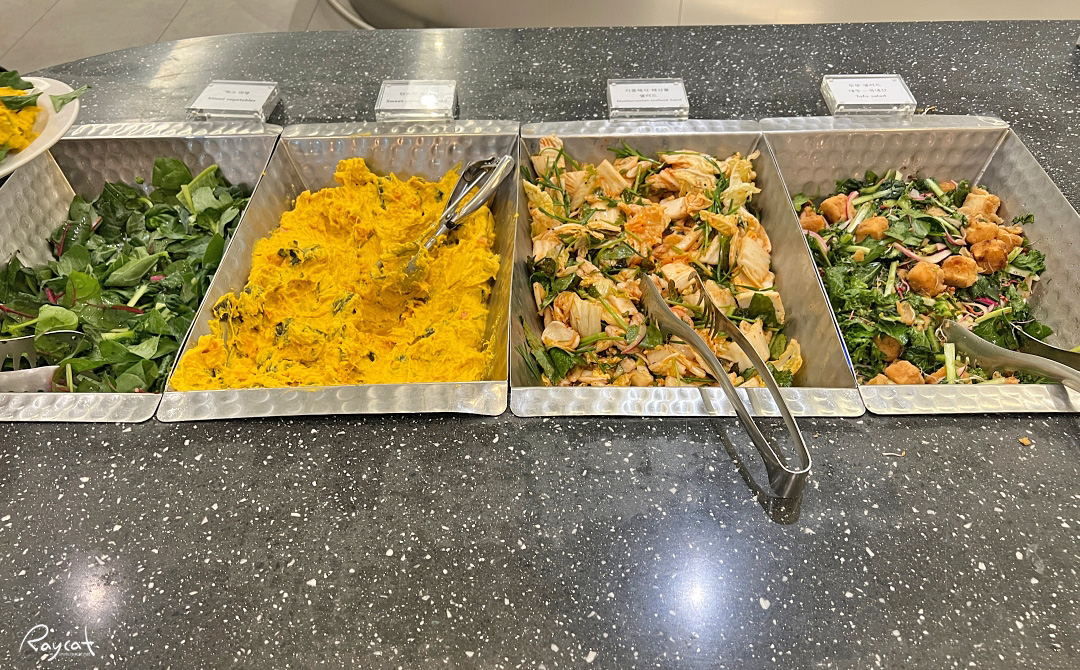 한식메뉴도 있으며 컵라면도 구비되어 있고 샐러드바에는 포케를 만들어 먹을 수 있습니다.