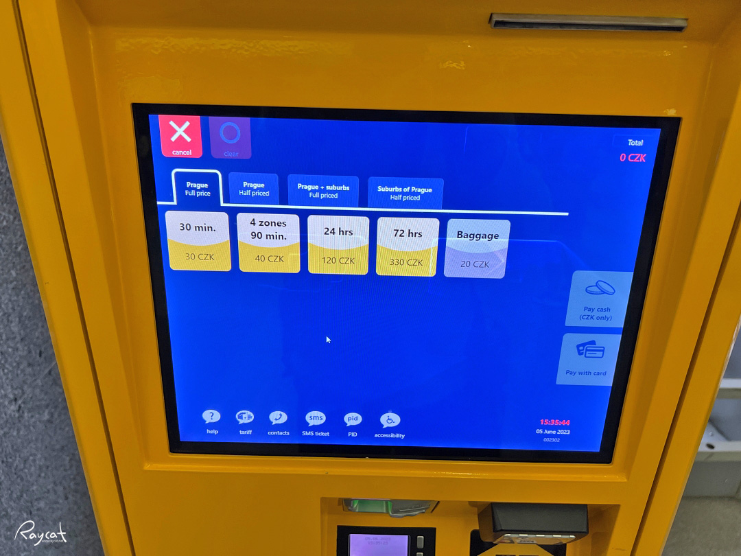 지하철이나 버스 티켓 판매기 모두 동일한데 구간 요금이 아닌 시간 요금제로 30분제 30CKZ, 90분 40CKZ, 24시간 120CKZ, 72시간 330CKZ로 프라하 시내를 운행하는 트램, 지하철, 버스 모두 시간 안에 무제한 이용할 수 있습니다.