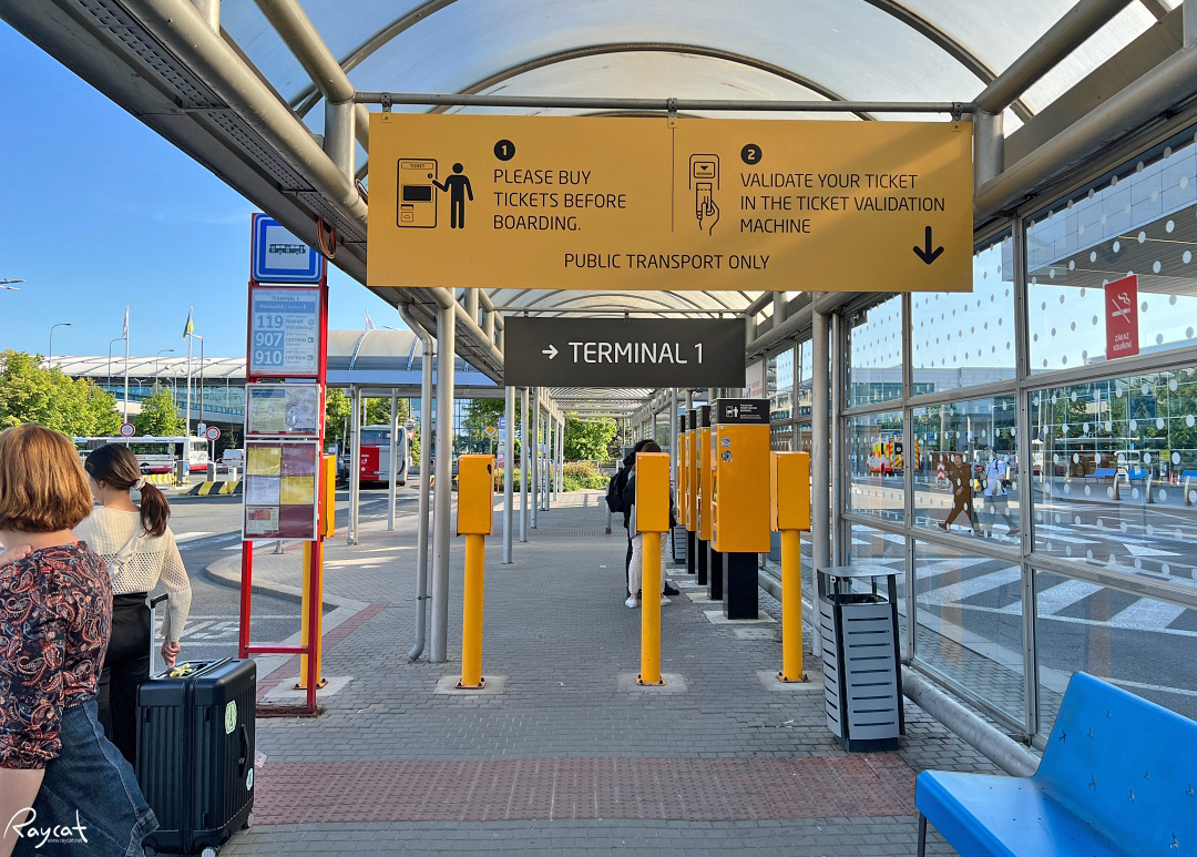 119번 버스 1번 터미널 정류장(출구 D, E, F)과 2번 터미널 정류장(출구 C, D, E) -> Nádraží Veleslavín (메트로 A 노선)을 이용.