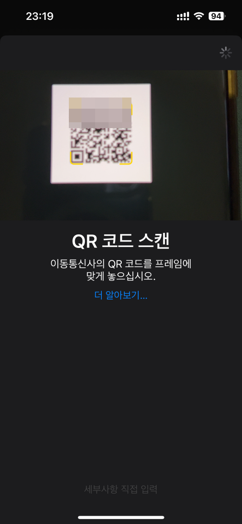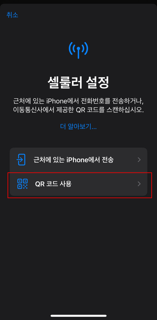 esim을 구매할 때 전송된 QR코드를 스캔합니다.