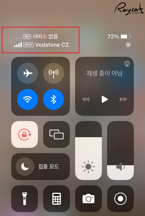 현지 도착해서 eSIM을 아래 캡처 화면처럼 데이터 로밍을 차단한 메인은 서비스 없음이 나오지만 eSIM이 활성화되며 체코의 보다폰 서비스에 연결되었음을 확인할 수 있습니다.