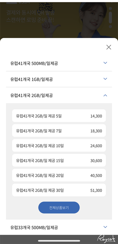 출국하기 하루전에 esim을 구매했는데 유럽의 경우 유로존으로 묶여 있어서 그런지 41개국, 33개국등 여러 나라가 함께 묶여 있어서 유럽 여러 나라를 방문한다면 더 편하게 사용할 수 있습니다.