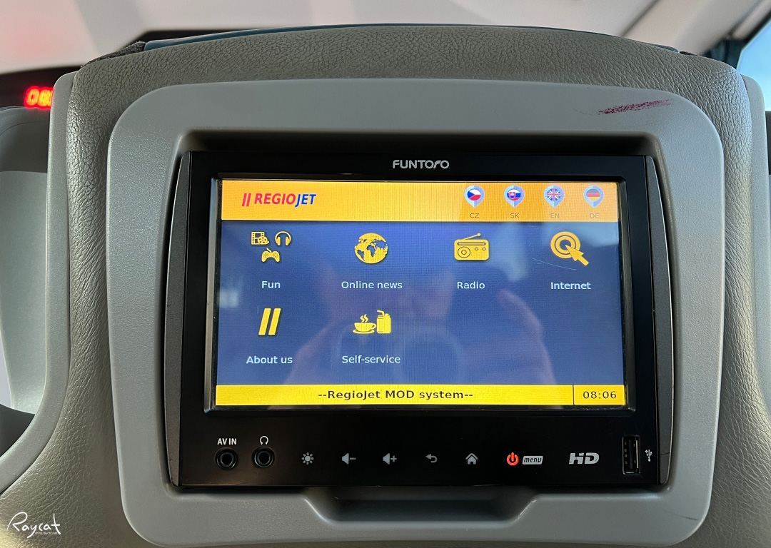 좌석 앞쪽 모니터에 이렇게 자리 표기가 있는데 내 자리는 8번이다. 리오젯 버스의 좌석은 넓고 편해서 장시간 이동이긴 했지만 불편하지 않았다.