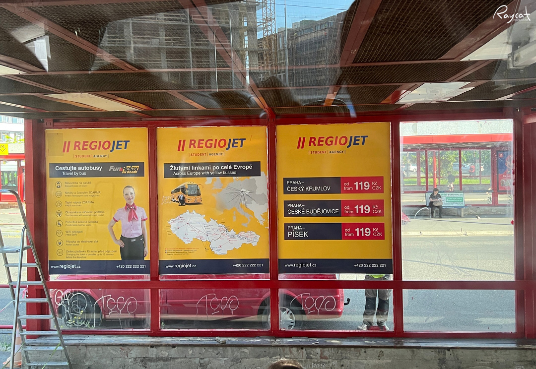 유럽 여행을 하다 보면 자주 보는 노란색 리오젯 버스는 멀리 서봐도 눈에 띄는데 안델역에서 지상으로 올라와서 저 노란색 버스가 대기하고 있는 곳으로 가면 체스키크룸로프로 가는 버스 정류장을 볼 수 있다.