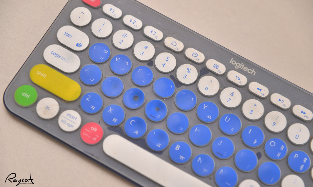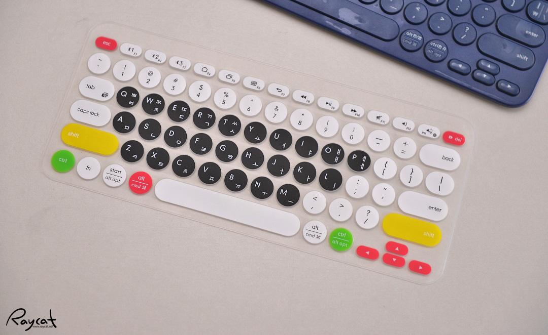 기존에 사용하던 로지텍 K380의 키스킨에 인쇄된 글자가 지워져서 새로 컬러 키스킨을 구매했습니다.