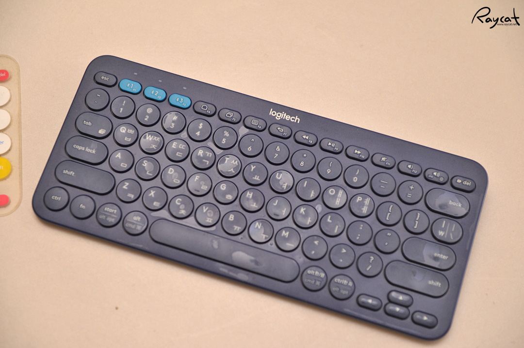 로지텍 K380의 경우 키스킨을 씌우지 않으면 정말 밋밋한 느낌이 드는데 키스킨을 씌우면 아주 산뜻한 느낌을 줍니다.
