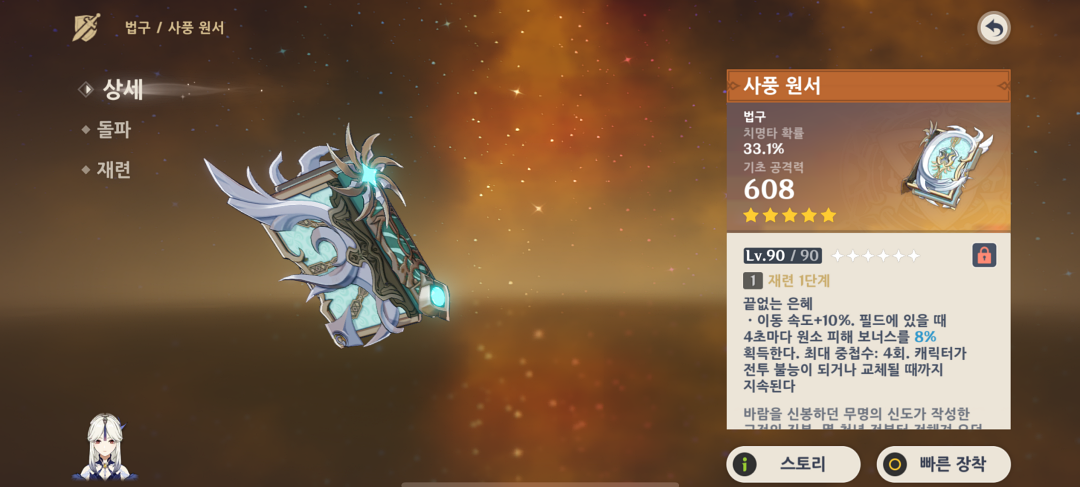 사실 다음 버전에 폰타인이 나오기 때문에 신캐가 없는 이번 캐릭터 픽업은 제 경우는 건너뛸 것 같습니다.