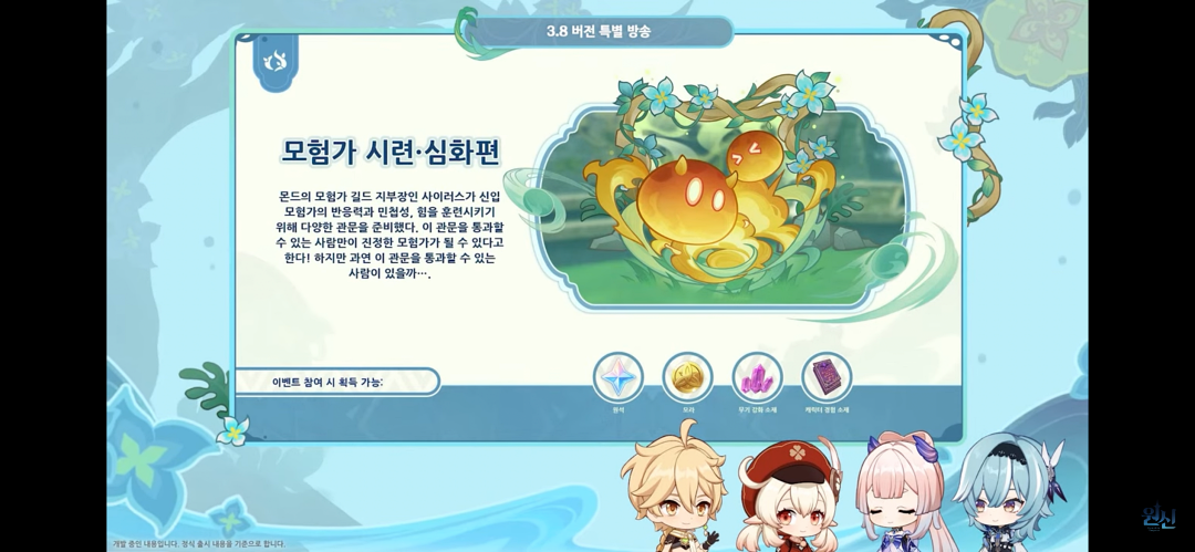 그리고 제일 지루하게 진행하고 있는 카드 게임 관련 이벤트도 3.8 버전에 있습니다. '수련의 방, 무한 시련'은 새로운 캐릭터 카드가 추가되고 새로운 도전이 있습니다.