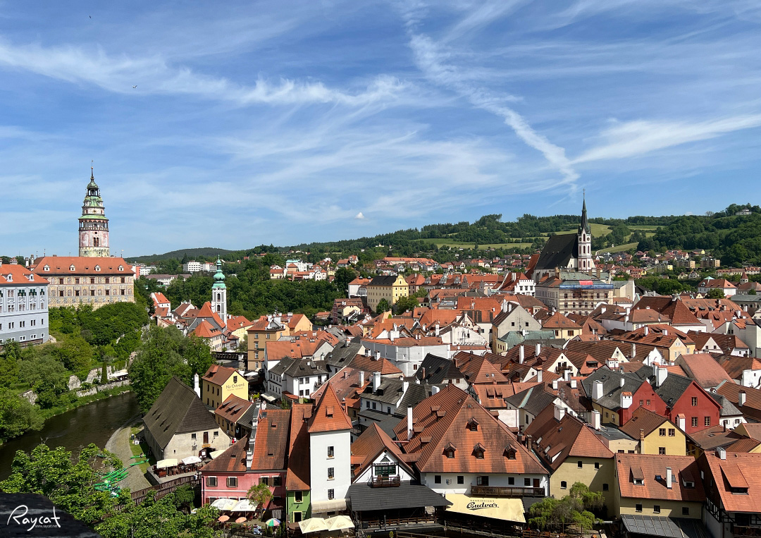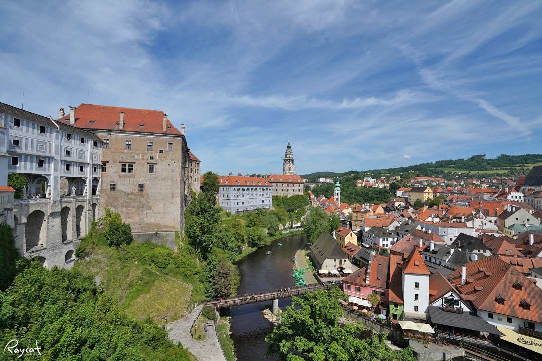 망토다리와 성 전망대에서 본 체스키크룸로프성과 구시가지의 풍경이다.
