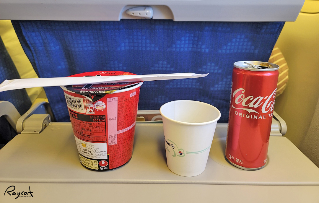 비행기만 타면 배가 고픈 건지 어쨌든 밥을 먹고 신라면이랑 콜라도 하나 주문 했습니다. 장거리 노선 컵라면은 항상 신라면만 나오는 것 같습니다.