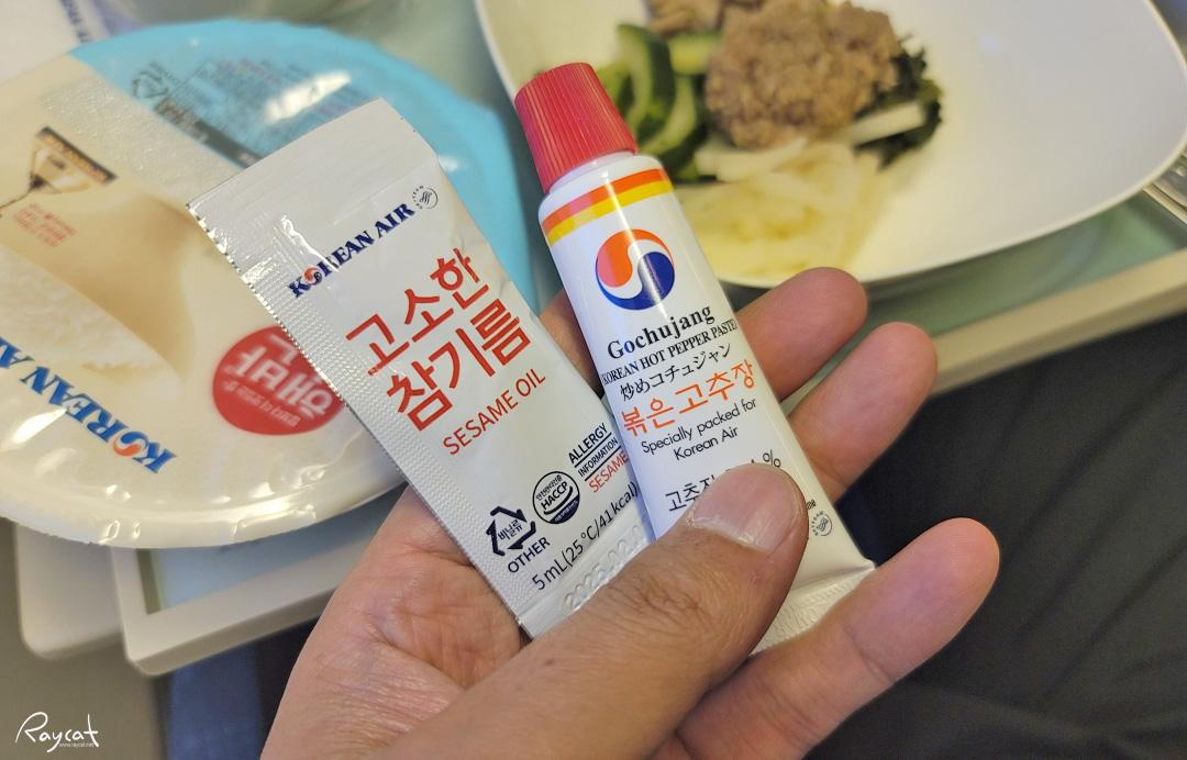 개인적으로 좋아하는 대한항공 기내식중 하나가 비빔밥인데 여기 제공해 주는 고추장이 꽤 맛있습니다.
