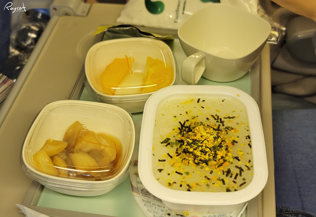 이건 옆자리 분이 주문한 죽인데 제 경우 아직까지 한 번도 장거리 노선에서 죽을 신청해 본 적은 없습니다.