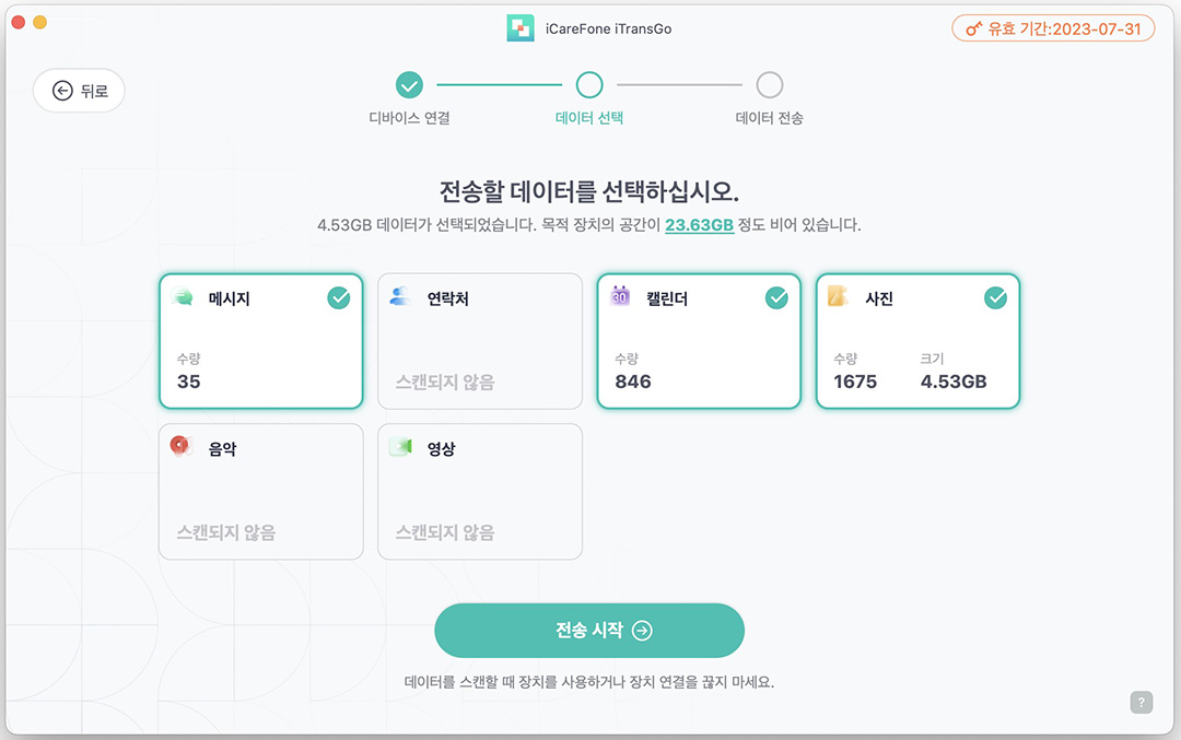 그리고 사진, 영상, 메시지, 음악등 필요한 데이터만 골라서 전송할 수 있습니다.