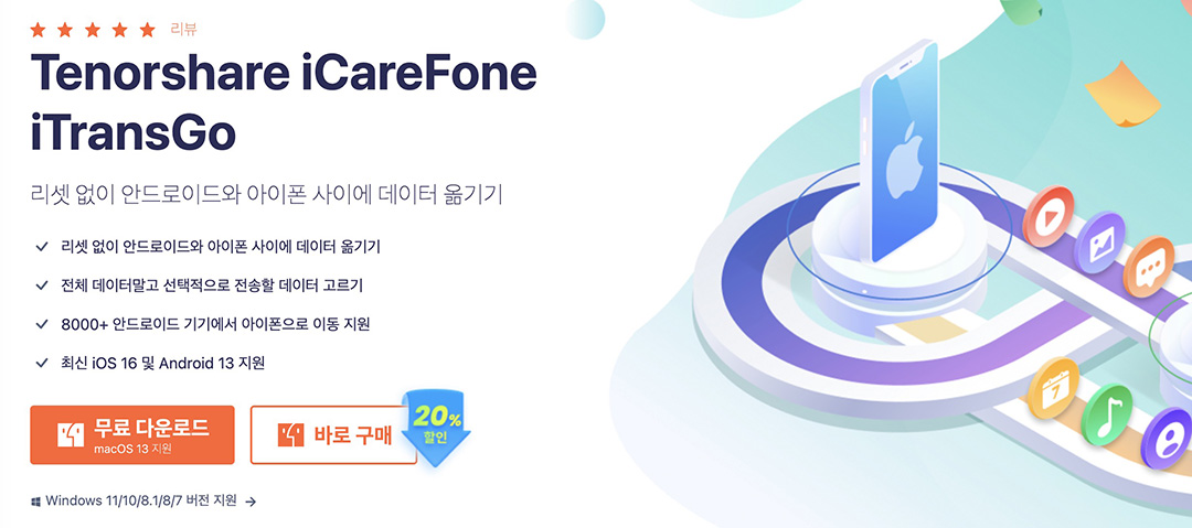 [공식]Tenorshare iCareFone iTransGo 안드로이드 아이폰 사이에 데이터 전송