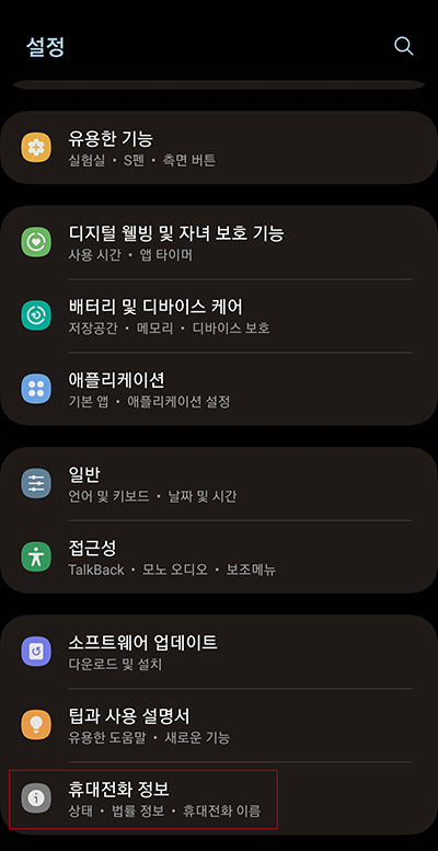설정 -> 휴대전화 정보 -> 소프트웨어 정보 -> 빌드번호 5번 탭 (빌드번호를 계속 탭 하면 개발자 옵션이 활성화되었다는 메시지가 나옵니다.)