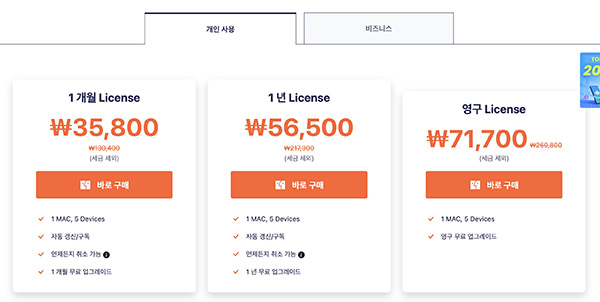개발이나 업무용이 아닌 이상 개인 사용자는 폰을 자주 바꾸는 것이 아니기 때문에 자주 사용할 일은 없을 거라 생각하는데 라이센스 비용은 위와 같습니다.