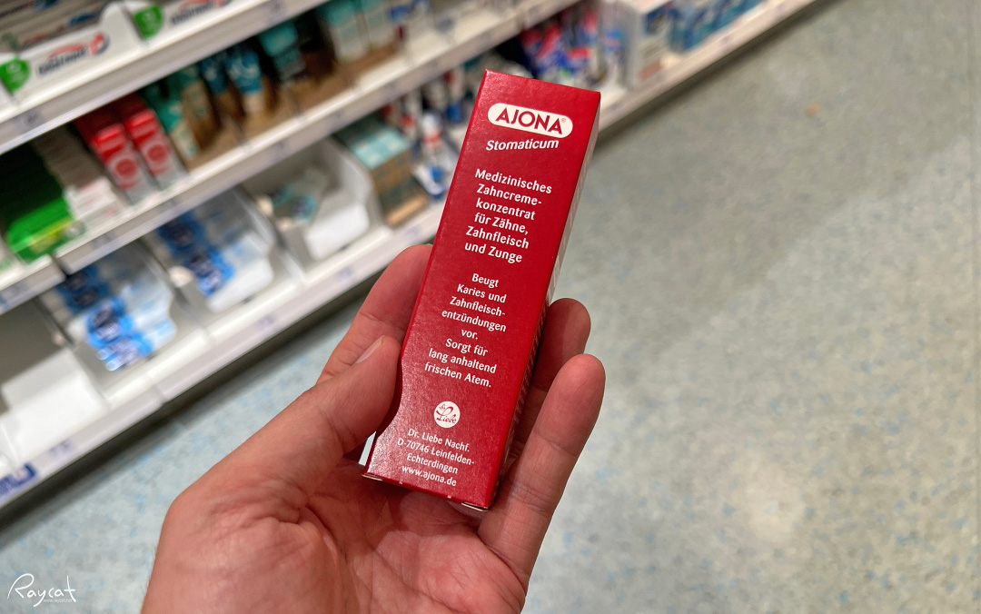 그리고 독일 DM에서 유명한 것 중 하나가 아요나 치약입니다. 독일 여행 중 사람들이 많이 선물로 구입하는 치약인데 호텔에서 치약을 제공하지 않아서 저도 DM에서 아요나 치약을 하나 구입 했습니다.