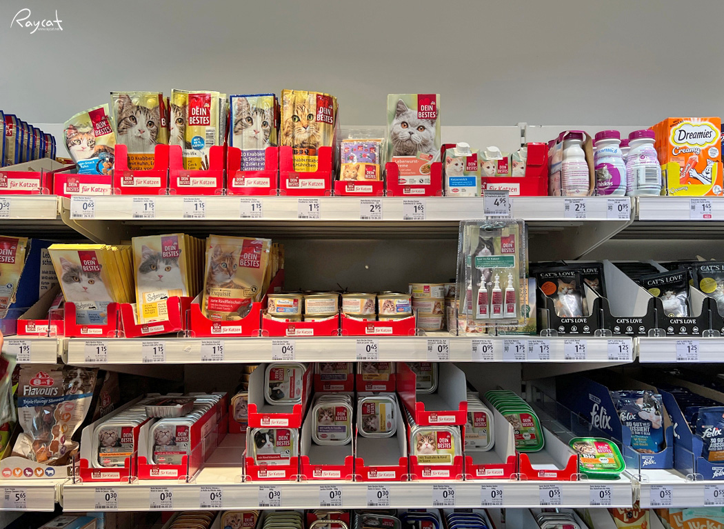 유럽 사람들의 반려동물 비율이 EU 통계를 보면 개와 고양이 52 : 48로 고양이도 많이들 키워서 그런지 고양이 관련 용품은 확실히 한국보다 종류도 다양하고 영양제나 간식도 종류가 정말 다양합니다.