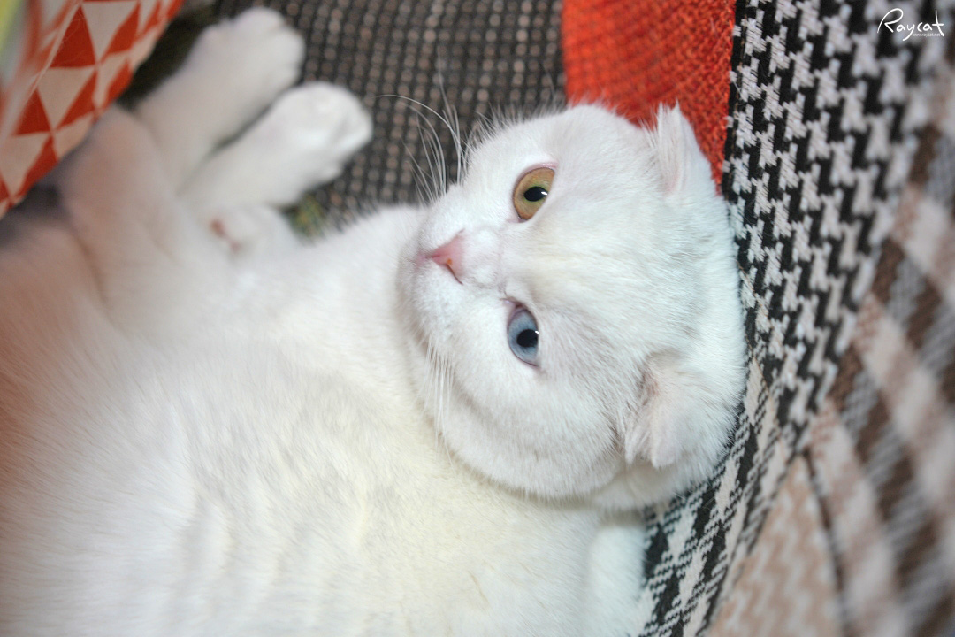 일월은 귀가 접혀있는 스코티쉬폴드다. 스코티쉬폴드중 귀가 접힌 고양이와 귀가 일반 고양이와 같이 귀가 펴진 스코티쉬폴드 스트레이트가 있는데 귀가 접혀있는 독특한 생김새 때문에 스코
