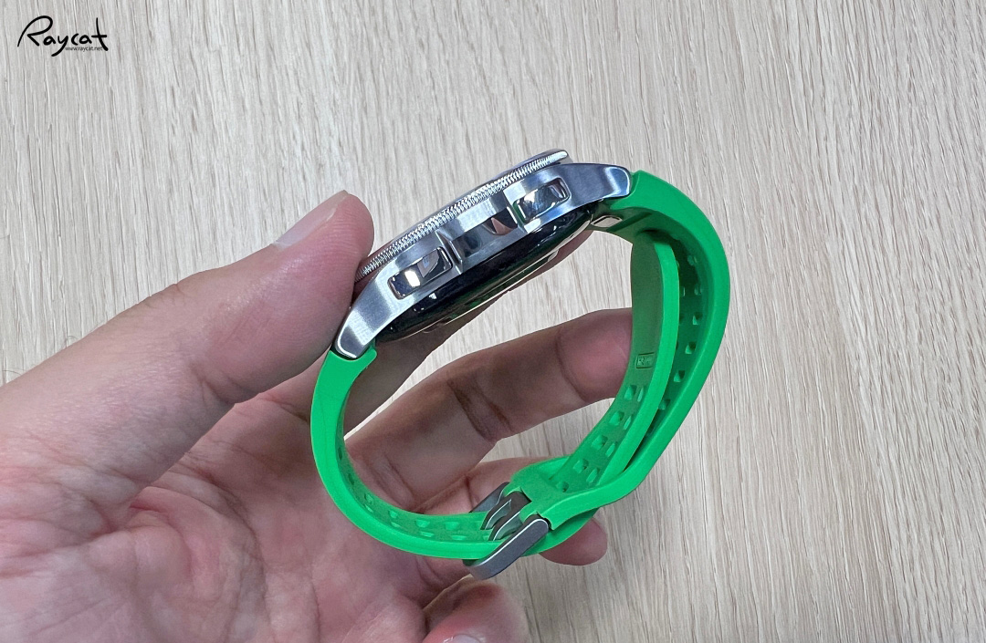참고로 이번에 갤럭시 워치6 시리즈는 스트랩이 이전보다 교체하기 더 쉽게 바뀌었는데 스트랩 아래쪽을 버튼을 누르면 바로 분리할 수 있습니다.