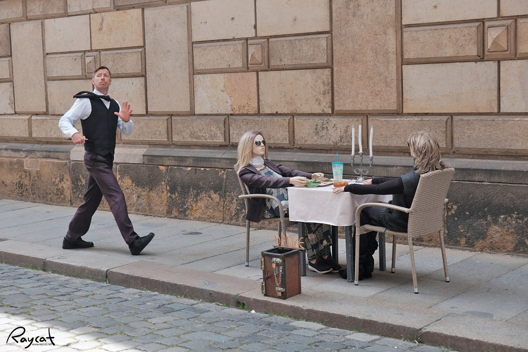 군주의 행렬 앞에서 마임 공연을 하는 독일인을 봤는데 멀리서 보면 여자 둘과 남자 한명인것 같았는데 여자는 마네킹이다.