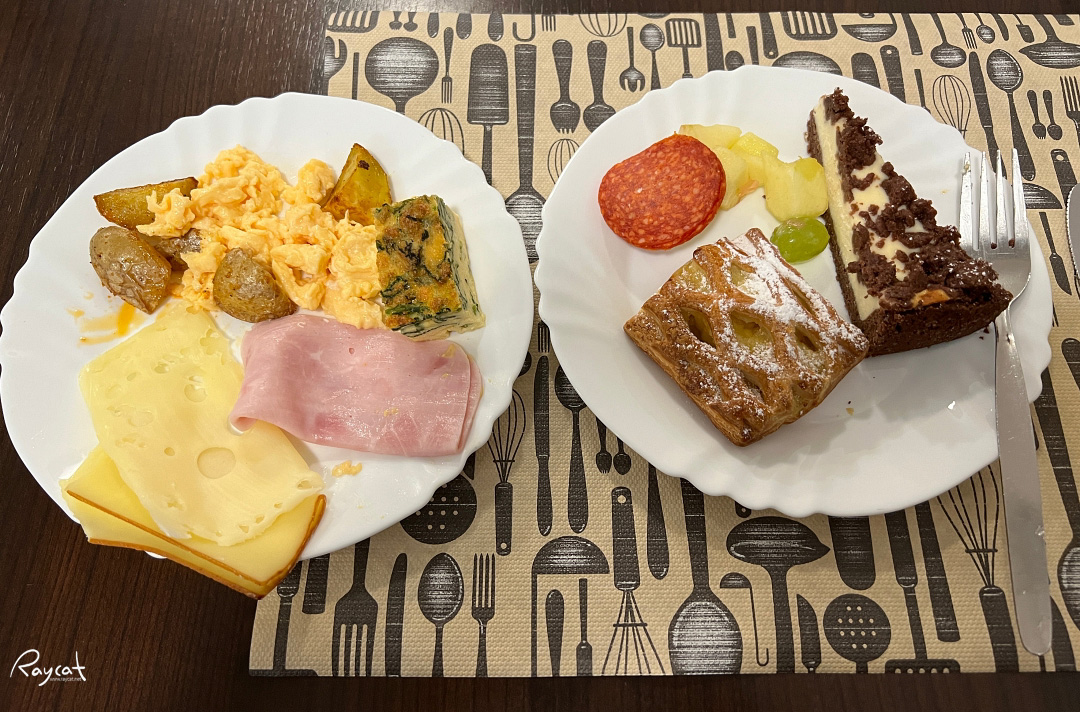 조식 메뉴는 대부분 빵과 베이컨, 햄, 오믈렛, 샐러드, 시리얼, 과일 등인데 같은 종류지만 매일 조금씩 바뀐다.