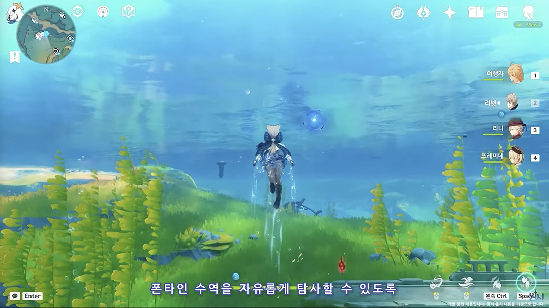 다행히 폰타인 물속은 산소 게이지 같은 시스템이 없기 때문에 땅 위를 다니듯 플레이어가 자유롭게 물속을 다닐 수 있도록 시스템을 완성했다고 합니다.