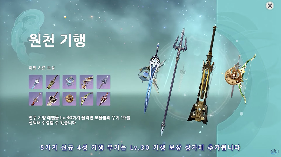 그리고 원신 4.0 버전부터 신규로 추가되는 단조 무기와 기행무기가 있습니다.