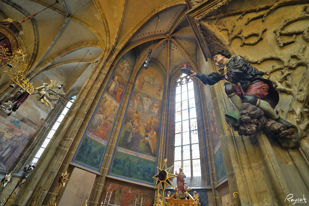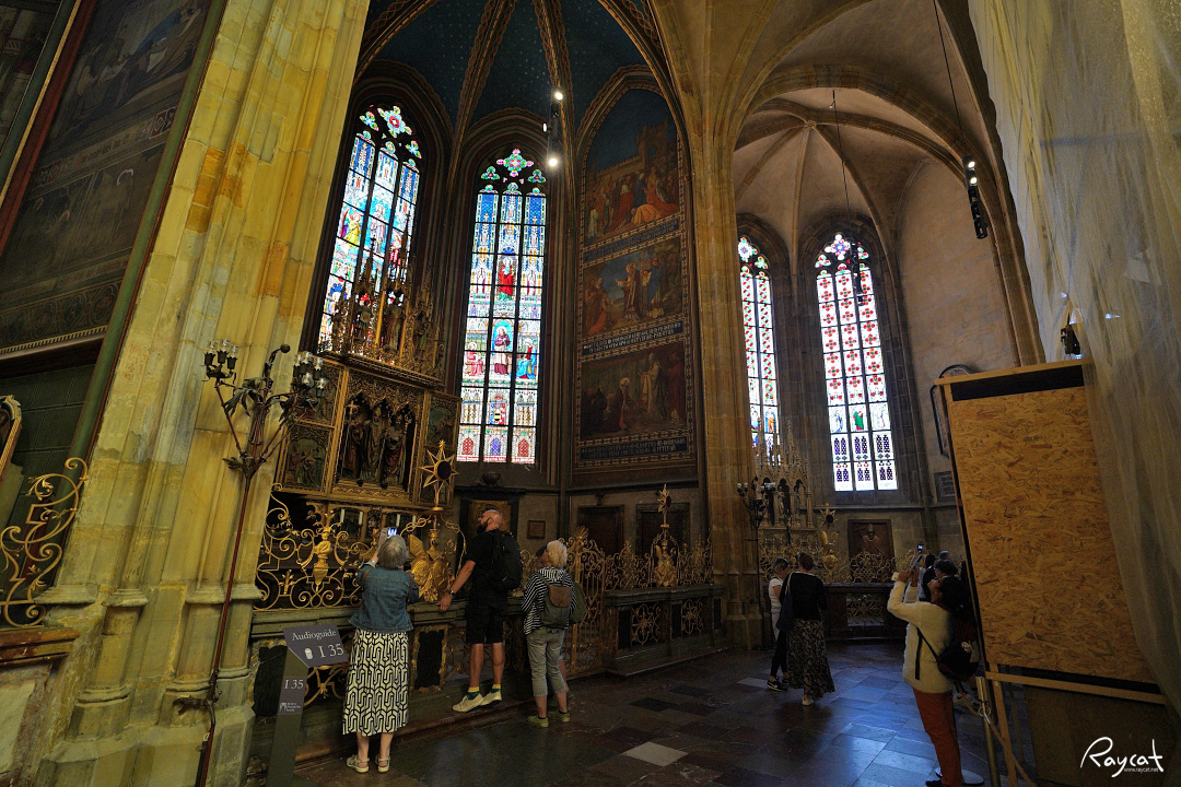성비투스 대성당은 규모도 규모지만 내부의 장식과 스테인드 글라스가 화려하고 아름답기로 유명한데 유리공예로 유명한 체코의 유리공예 예술을 잘 보여주는 곳이다.