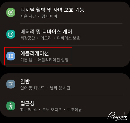 스마트폰 설정에서 애플리케이션 탭하고 Android(안드로이드) 설정을 탭 하면 아래와 같은 화면을 볼 수 있습니다.
