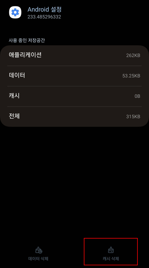 Android 설정에서 아래쪽에 보면 캐시 삭제가 있습니다. 캐시 삭제를 탭하면 캐시 데이터가 삭제됩니다.