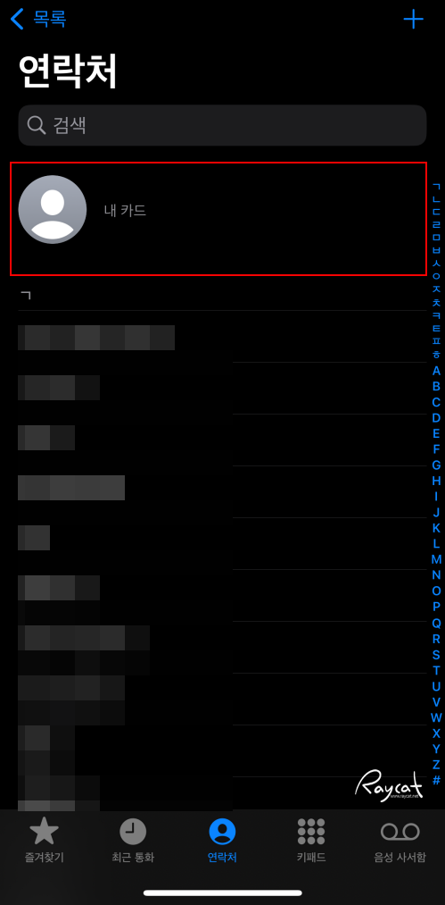 - 연락처 앱을 실행, 친구의 연락처를 찾아 해당 연락처 카드를 탭