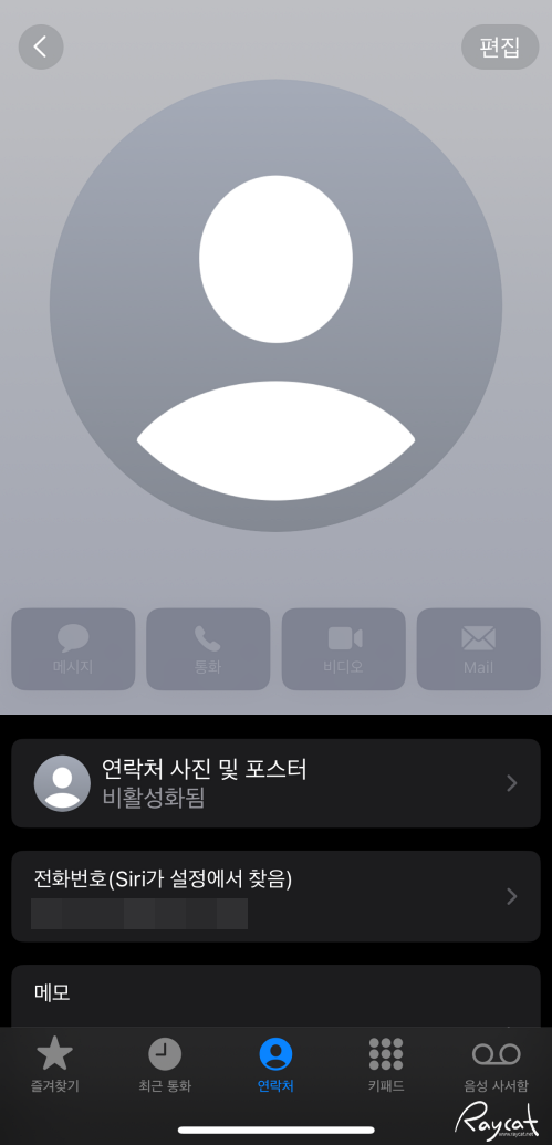 보통 연락처 포스터를 만들어두지 않았으면 위 캡처 이미지처럼 표시됩니다.