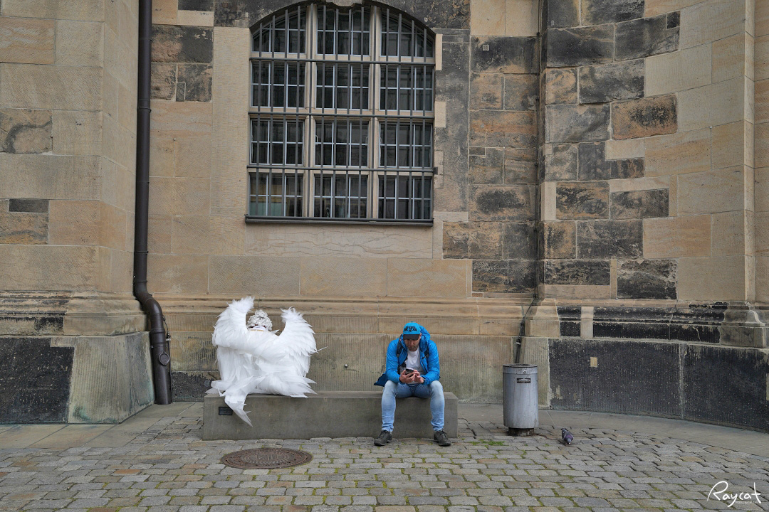 프라우헨 교회를 잠깐 돌아보고 나왔는데 입구에 있던 천사 아저씨가 점심시간이라 그런지 잠시 휴식하고 있다.