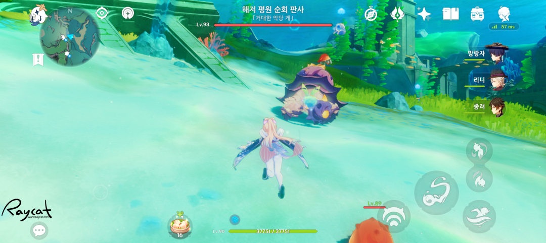 비비안느는 상시 물원소 부착 몹이라 물원소는 면역이며 딜이 잘 나오는 파티로 잡아야 합니다. 공격을 받으면 상당히 큰 대미지가 들어오기 때문에 물원소를 제외한 딜찍누가 가장 편합니다.