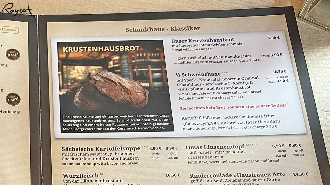 참고로 슈바인학센은 돼지 발로 만드는 요리로 체코의 꼴레뇨와 비슷한데 혼자 먹기 양이 많은데 이 레스토랑은 1인용으로 슈바인학센 하프가 메뉴에 있어서 본인처럼 혼자 여행하는 사람에게 딱 맞는 양의 슈바인학센이 나온다.