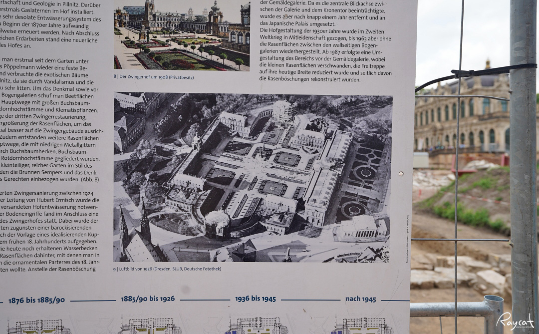 츠빙거는 외관은 복원되었으나 내부의 정원은 현재도 복원 중으로 한창 공사 중이다.