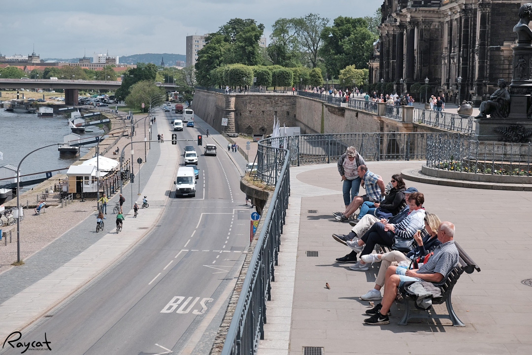 엘베강을 따라 조성된 산책로에는 아우구스투스 다리, 가톨릭 궁정 교회 등과 같은 명소가 있으며 다양한 레스토랑 간단한 스낵을 판매하는 상점과 카페 드레스덴 거리의 예술가들도 만날 수 있다.