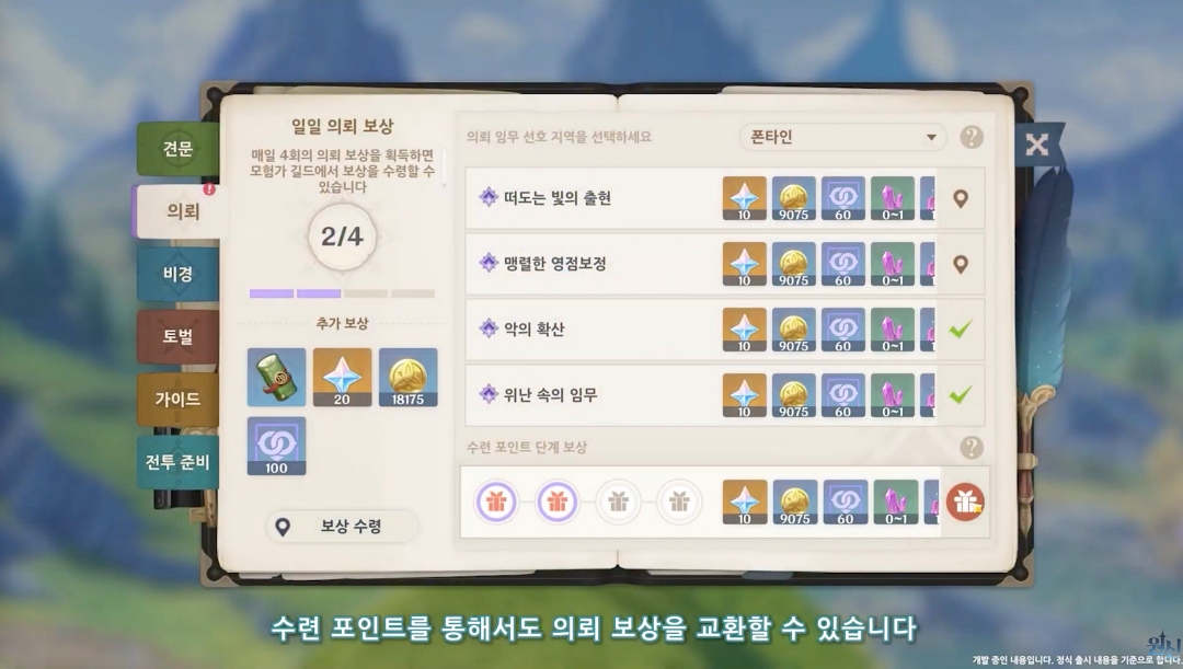 그리고 신규 유저를 위한 새로운 시스템 업그레이드가 있는데 기존 일일 의뢰 보상 외 수련 포인트 단계 보상 시스템이 도입됩니다.