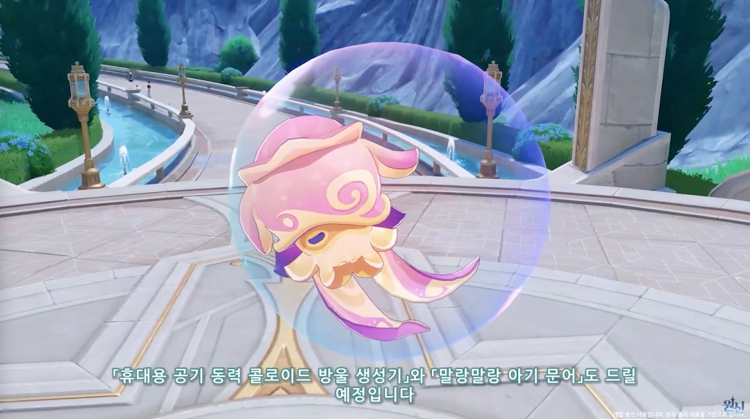 3주년 보상으로 나오는 펫인 '말랑말랑 아기 문어'의 경우 물 밖으로 나오면 위 캡처 화면처럼 공기방울을 만들어 방울 속에서 잠을 자고 물속으로 들어가면 여행자를 따라다니며 함께 수영을 합니다.