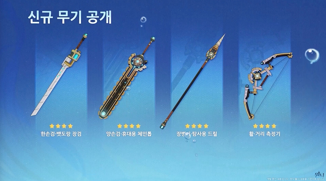 그리고 4.1 버전에서 4성 신규 무기가 추가됩니다. 아직 옵션은 공개되지 않았지만 페보 시리즈처럼 4성 신규 무기가 새로 추가됩니다.