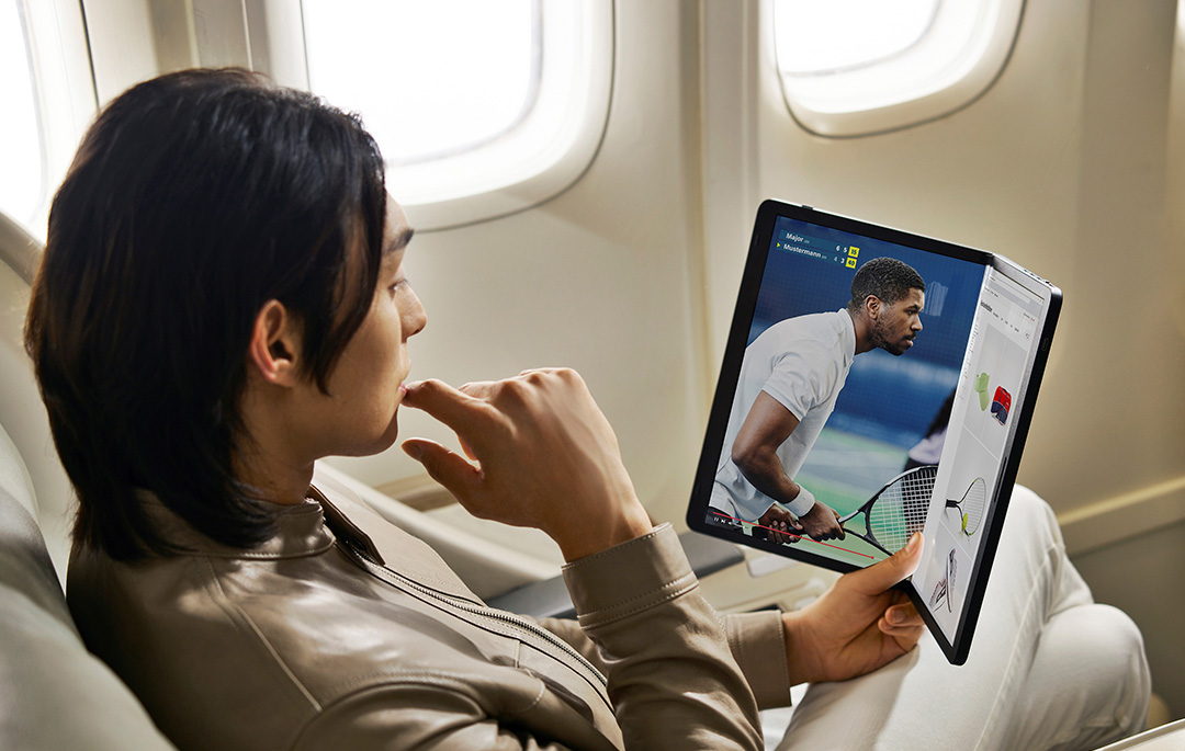 LG 그램 폴드는 접으면 12인치대 노트북, 펼치면 17인치의 대화면 태블릿처럼 사용하며 접었다 펴는 구조에 맞춰 UI/UX를 구현하고 다양한 주변 기기와의 연결성을 강화했습니다.