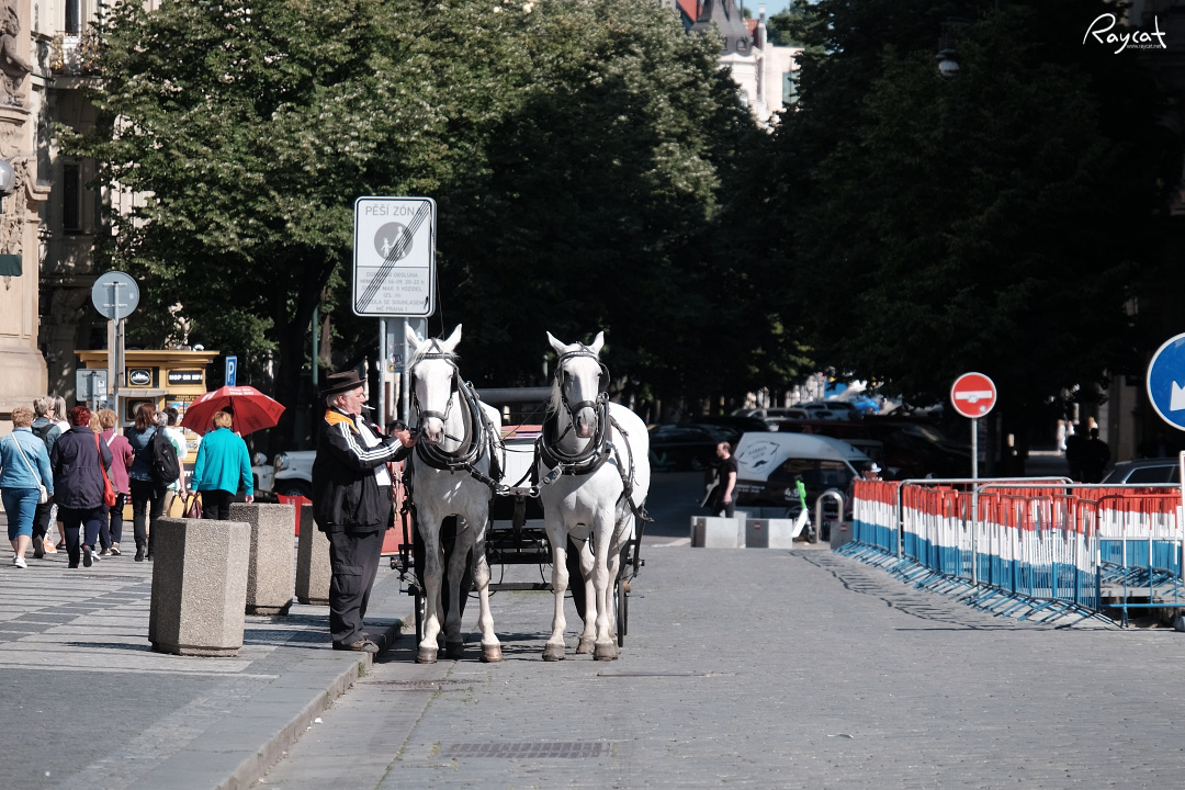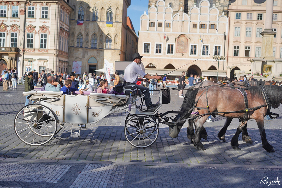 구시가 광장에서 꽤 유명한 관광상품중 하나인 말이 끄는 중세마차로 광장을 한 바퀴 돌아서 화약탑으로 올라가 다시 광장으로 돌아오는 코스로 돌고 있는 마차다.