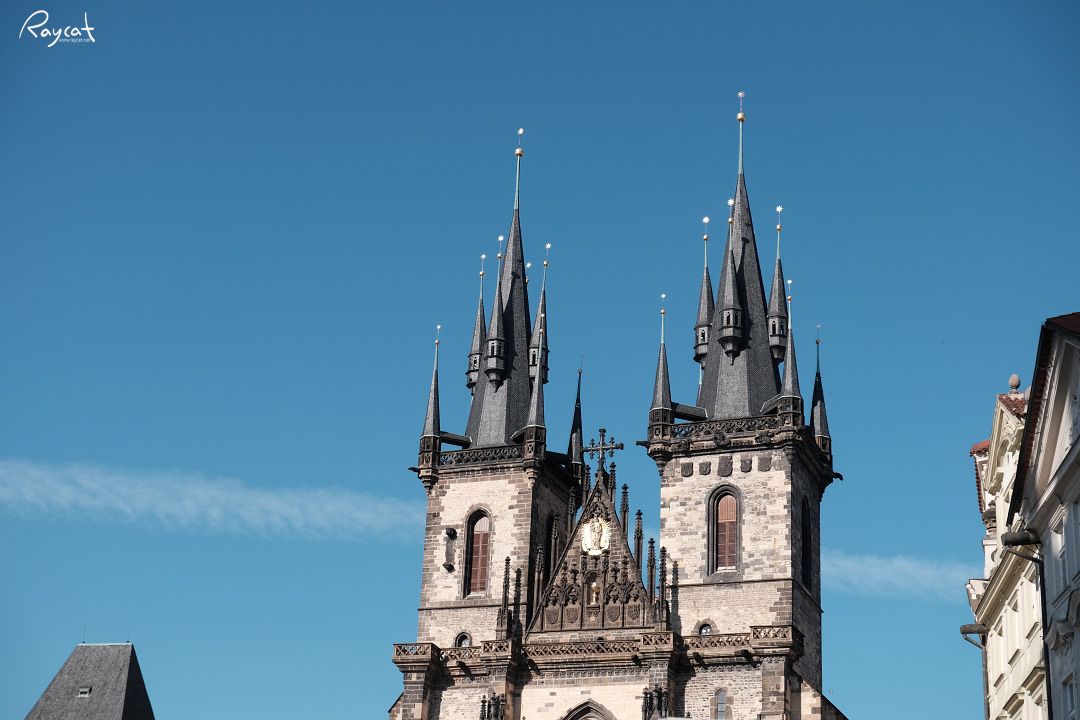 고딕건축 양식을 잘 보여주는 틴성모 마리아 교회는 프라하성 비투스 대성당과 함께 프라하를 대표하는 교회로 뾰족탑은 야간에 조명이 들어오면 더 화려하게 보인다.