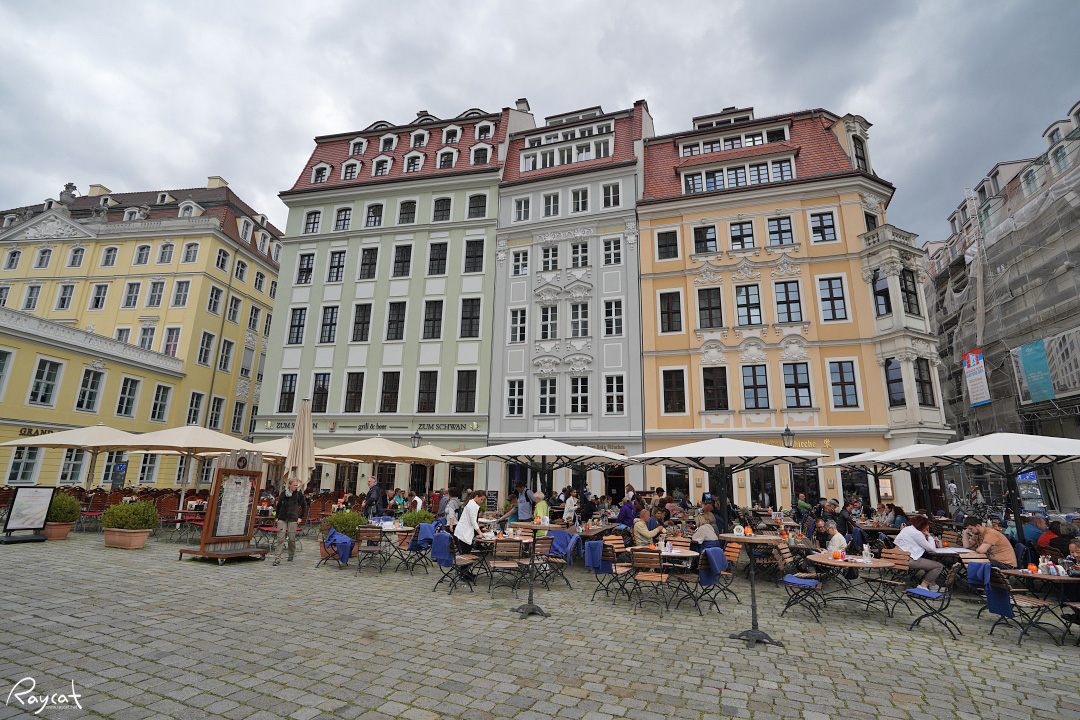 드레스덴의 구시가지는 2차 대전 당시 폭격으로 무너진 곳이 많아서 지금은 대부분 전쟁이후 재건된 곳이 많아서 프라하의 경우 중세유럽의 낡은 느낌이라면 드레스덴은 새로 지어진 건축물들이 많아서 느낌이 좀 다르다.