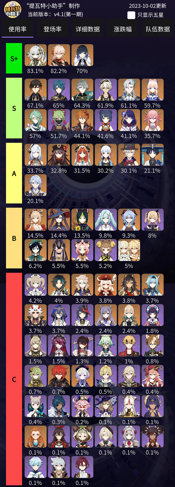 위챗 데이터를 보면 보유율 대비 픽률을 보면 A티어로 분류된 캐릭터들까지 활용을 많이 한다고 보면 될 것 같습니다.