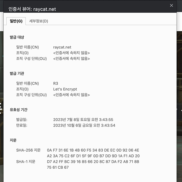 https로 접속이 안되며 인증서를 확인해보니 10월 6일 인증서가 만료된 것으로 나옵니다.